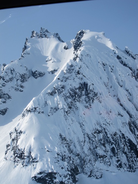 Another view from the heli. We landed and got out at the top lookers left of the big face on the left.