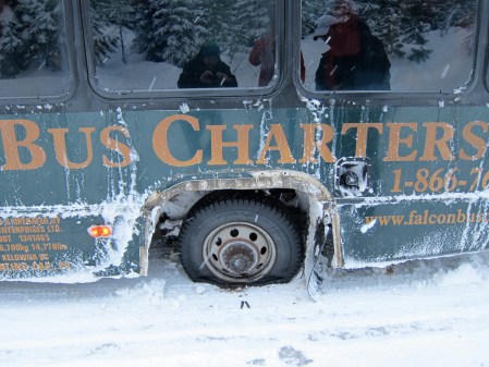The wheels fell off of the trip. Literally. This bus started the drive with two tires. We looked out the window and one of them was passing us. It ended up 300 yards down the road. Then the other tire popped.